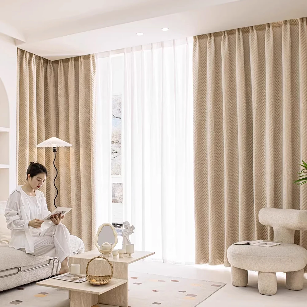 1pc Linen Blackout Mori Style Simple Solid Color Beige Sheer Curtain for Home Living Room House Decor Breathable Moaquito proof