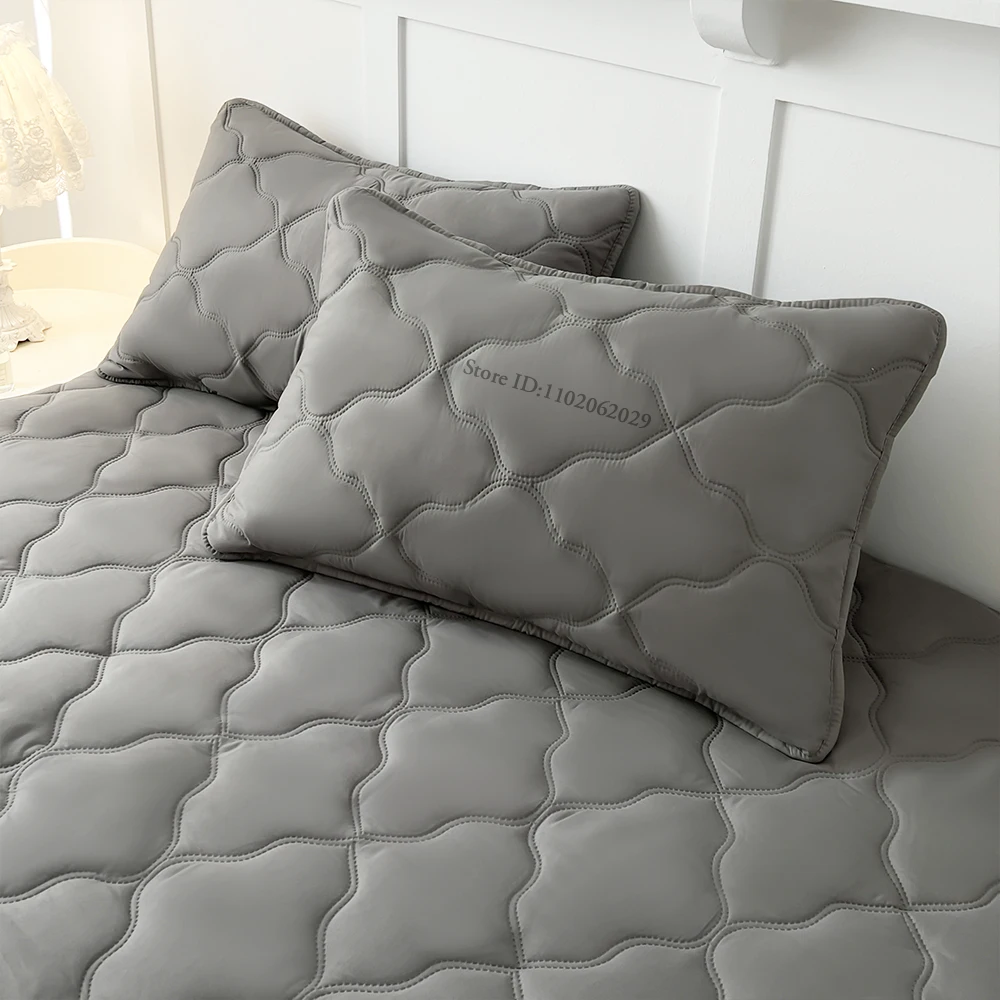 Solid color plaid quilted double-sided abraded washable bed cover oblique square bed cover can be used in all seasons